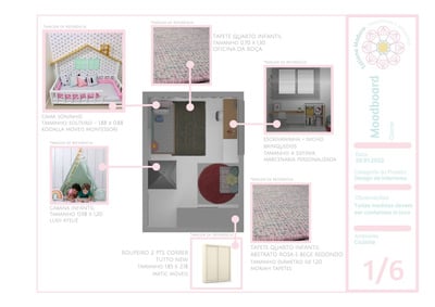 Você receberá um moodboard com a planta com layout, sugestões de mobiliário, cor, itens de decoração, e 02 imagens 3d - em arquivo pdf pelo seu e-mail.